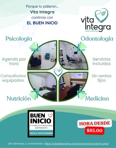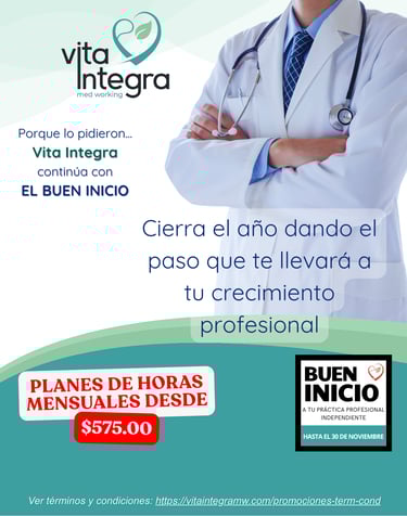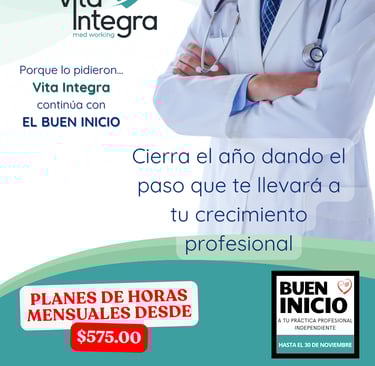 Aplicable únicamente para los profesionales de la salud que visiten los consultorios de Vita Integra entre el 28 y el 30 de noviembre del 2025 y contraten cualquier plan antes del 7 de diciembre, sin excepción.